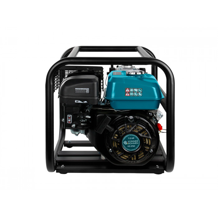 Корпус мотопомп «Könner & Söhnen» виготовлений з високоміцного алюмінію за допомогою цілісного лиття, не піддається корозії, температурним впливам та деформації. Мотопомпи оснащені сталевим паливним баком збільшеного розміру, що подовжує час роботи без дозаправки. - демпфери для зниження вібрації: