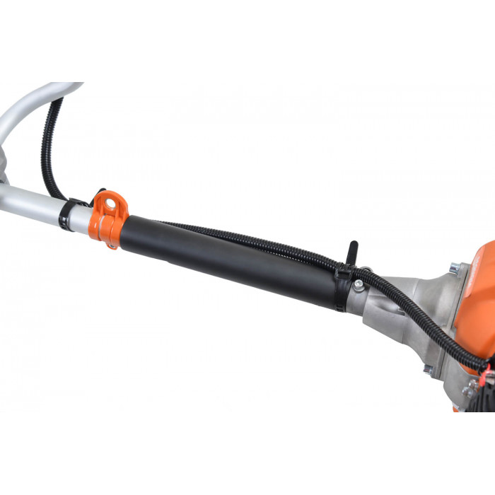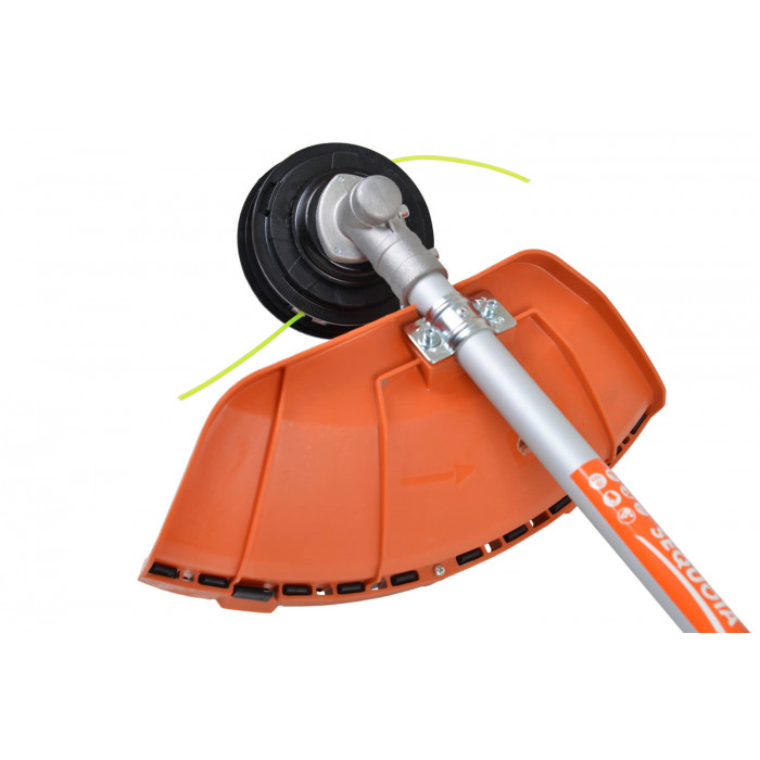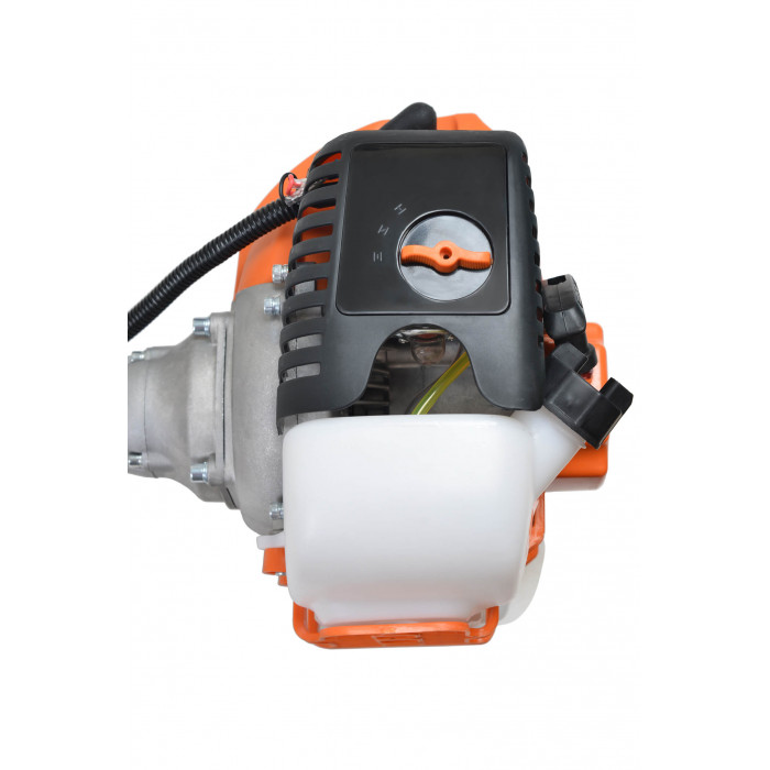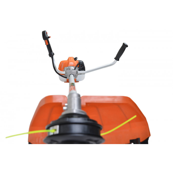 Довгу роботу коси забезпечує надійний двигун, що розвиває 8 000 об/хв, великий маховик, охолоджуючий двигун під час роботи і великий бак для паливної суміші.