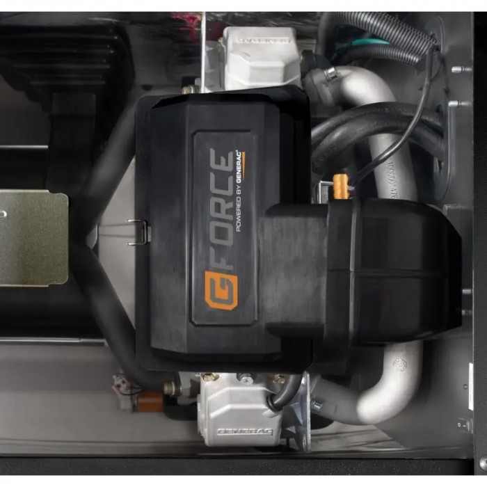 Генератор оснащений двигуном Generac G-Force 1000 (OHV) з об’ємом 999 см³ та V-подібним двоциліндровим розташуванням. Система змащення під повним тиском, електронне запалювання та оптимізована конструкція циліндрів забезпечують стабільну роботу, знижений знос і тривалий ресурс.