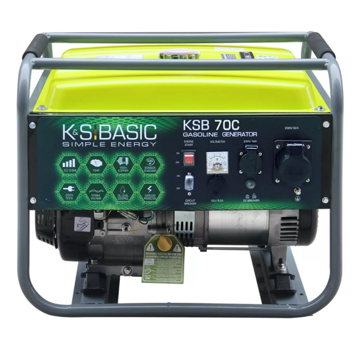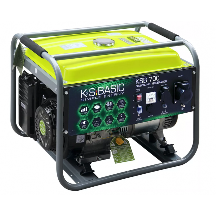 Konner&Sohnen BASIC KSB 70C - бензиновий генератор, призначений для забезпечення тимчасового електроживлення у приватних будинках, на будмайданчиках, дачах, під час виїздів за місто та при аварійних відключеннях. Двигун агрегату спроектований з урахуванням актуальних європейських нормативів з безпеки та екологічності. Пристрій підходить для користувачів, яким потрібне мобільне джерело струму з ручним запуском та зрозумілим керуванням без необхідності професійної підготовки.