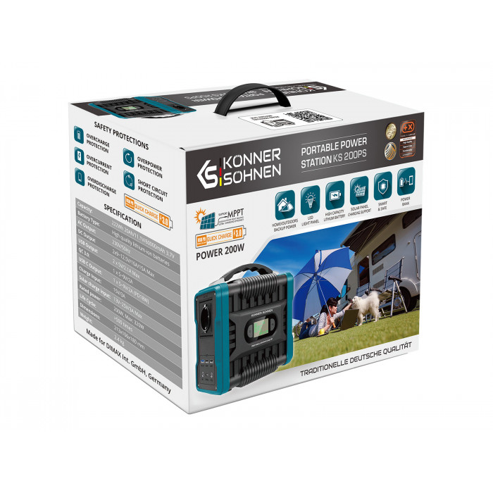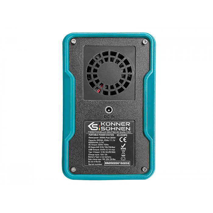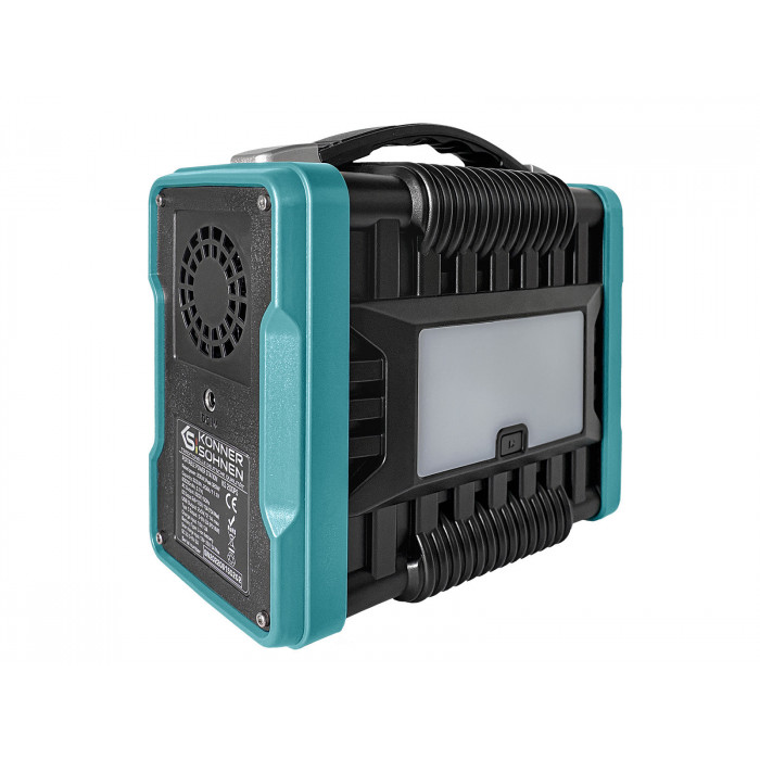 Всі портативні зарядні станції Könner & Söhnen® оснащені технологією Power Delivery, що забезпечує швидке заряджання акумуляторів сучасних смартфонів і навіть ноутбуків. Багатопортова, сумісна з безліччю приладів та включає: 1 порт постійного струму DC, 2 порти змінного струму AC, 1 порт швидкої зарядки USB PD Quick Charge 3.0, 2 порти USB 2.1, 1 порт USB Type-C, що зручно для живлення різноманітних електронних пристроїв. - протиударний пластиковий корпус: