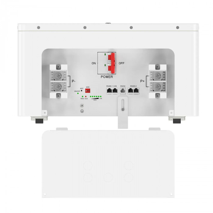 Встроенная интеллектуальная система управления (BMS) контролирует все ключевые параметры работы аккумулятора: защищает от перегрузок, короткого замыкания и перегрева, а также обеспечивает балансировку элементов. Благодаря поддержке Bluetooth можно удобно отслеживать состояние батареи в реальном времени, а интерфейсы CAN и RS485 позволяют легко интегрировать её в современные энергосистемы.