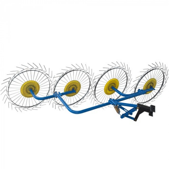Благодаря тому, что диски установлены на шарнирно-подвижных рамах, они отлично повторяют рельеф почвы и эффективно сгребают сено. Колеса установлены на подшипники и потому обращаются легко и маневренно. Прутья изготовлены из высокоуглеродистой стали, что обеспечивает им высокую прочность и пружинистость. При необходимости любой из узлов можно отремонтировать или заменить.