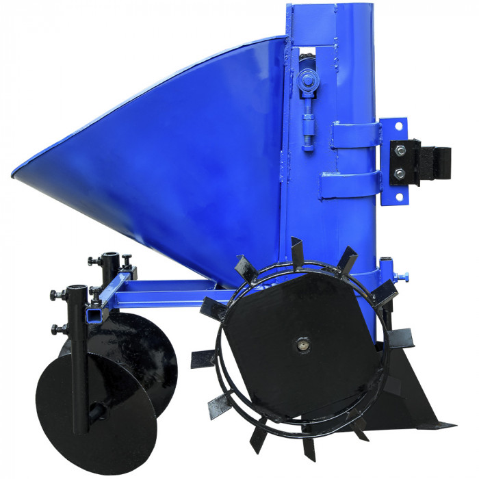 Картофелесажатель агрегатируется со всеми мотоблоками, а также мототракторами (имеющими соответствующий тип навески).