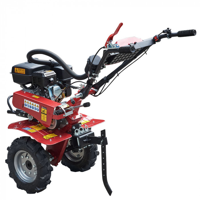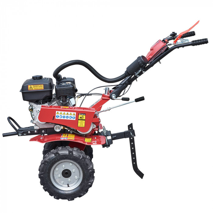 МБ 40-24 имеет кронштейн для переднего навесного оборудования, например, косилки, которую можно легко подключить с помощью свободного ручья на ведущем шкиве. Регулировка руля по высоте и углу поворота быстрая и удобная. Редуктор почвофрезы прочный чугунный, в комплекте есть пневматические колеса 4.00-8.