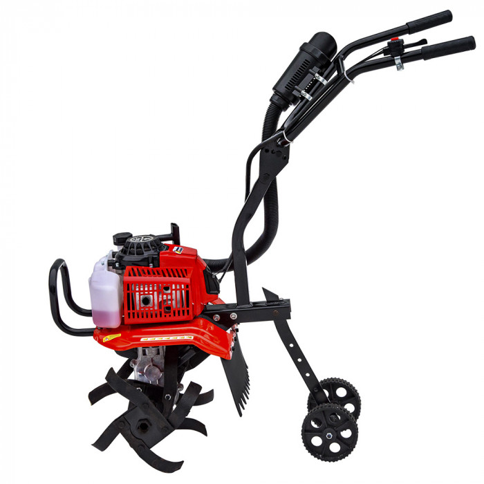 Благодаря небольшим размерам, он прекрасно культивирует почву в труднодоступных местах, в том числе между виноградниками, под кустами, на грядках, на цветочных клумбах, в теплицах и т.д.