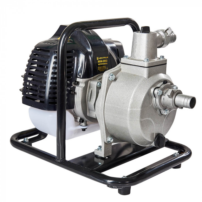 Простота и надежность конструкции гарантирует легкость и долговечность в эксплуатации. Мотопомпа Кентавр ВБМ-2552 состоит из двух основных узлов: 2-тактного одноцилиндрового двигателя внутреннего сгорания объемом 52 см³ (мощность 3,6 л.с.) и центробежного самовсасывающего водяного насоса в алюминиевом корпусе. Вода перекачивается при помощи рукавов, соединенных с всасывающим и нагнетательным патрубками насоса диаметром 25 мм. Для надежности соединения в комплект входит набор хомутов, штуцеров, гаек и уплотнителей.