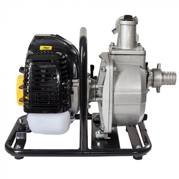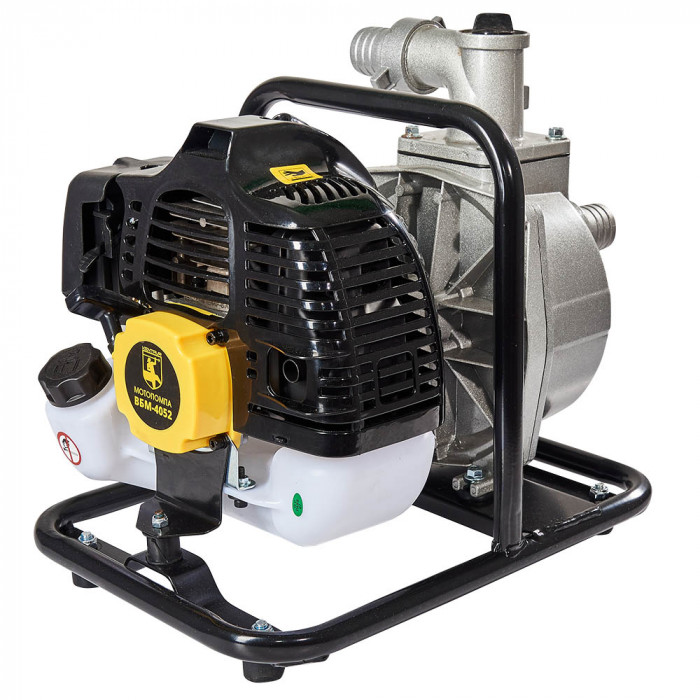 Состоит изделие из одноцилиндрового двухтактного двигателя внутреннего сгорания и центробежного водяного насоса, закрепленного через амортизационные подушки на устойчивой металлической раме. Самовсасывающий насос с чугунной крыльчаткой способен перекачивать воду с глубины до 8 м и поднимать на высоту до 21 м. Производительность устройства напрямую зависит от высоты подъема воды и может достигать 15 м³/ч.
