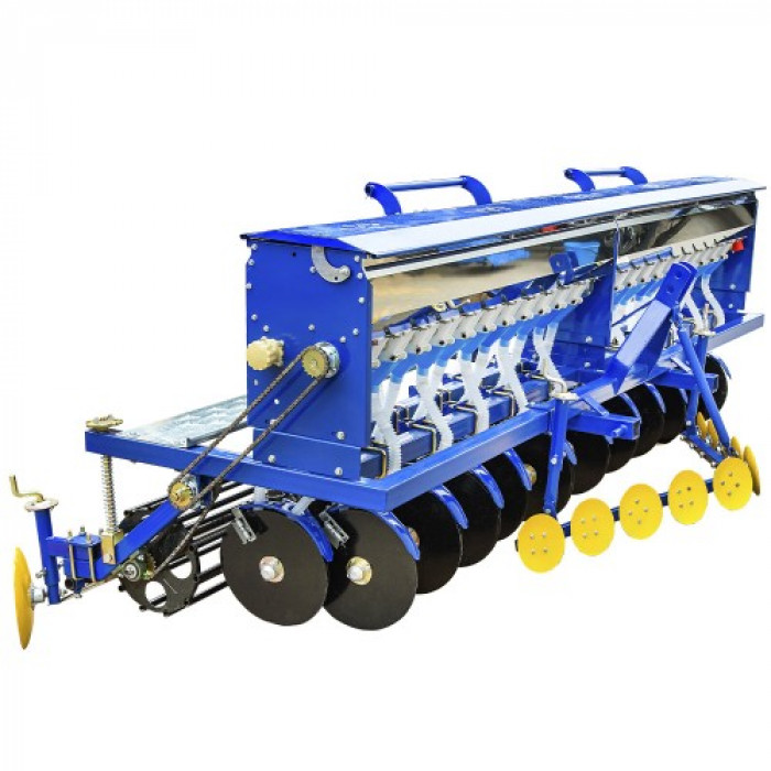 Сеялка навесная зернотуковая с дисковыми сошниками и катушечным высевающим аппаратом используется для посева семян зерновых культур (пшеница, рожь, ячмень, овес), бобовых культур (горох, фасоль, соя, чечевица, бобы) и льна, а также близких к зерновым по размерам семян и нормам высева (гречиха, просо, сорго, люцерна). Одновременно с посевом происходит дозирование внесения в рядки гранулированных минеральных удобрений. Сеялка оснащена дисковыми передними выравнивателями почвы для предпосевного выравнивания рельсовым катком и полевыми досками для уплотнения и выравнивания поверхности почвы после посева семян и внесения удобрений. Рабочая скорость движения 6 км/ч. Глубина заделки семян 20-80 мм.