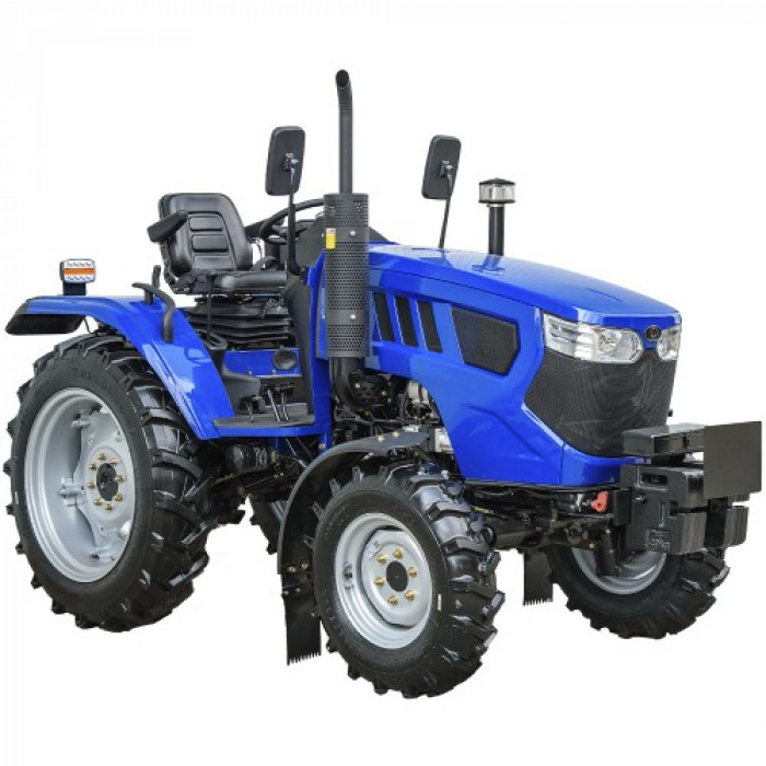 Гидросистема трактора имеет отдельный насос и два гидровыхода с муфтами быстрого разъединения. Навесная система выдерживает нагрузку до 800 кг. ВОМ работает в двух режимах — 540/1000 об/мин — это универсально для плуга, сеялки, фрезы или опрыскивателя.