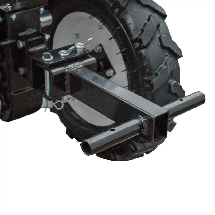 Имеет буксирное устройство мотоблочного типа, что позволяет подключать различное навесное оборудование. Металлические передние и задние крылья защищают механизмы и повышают долговечность.