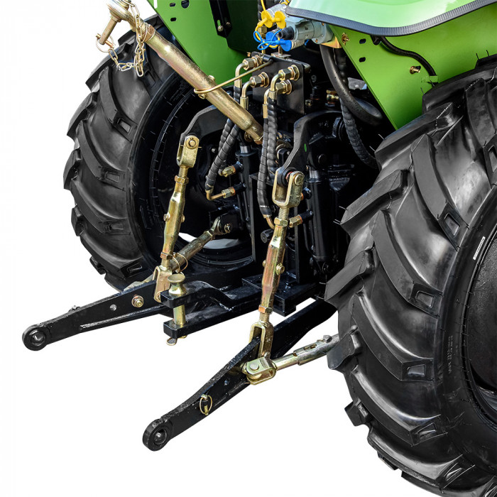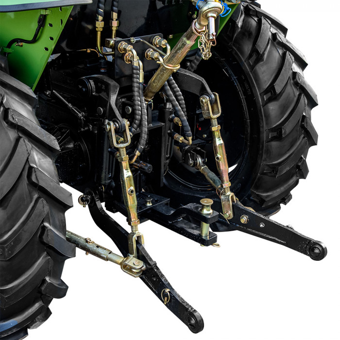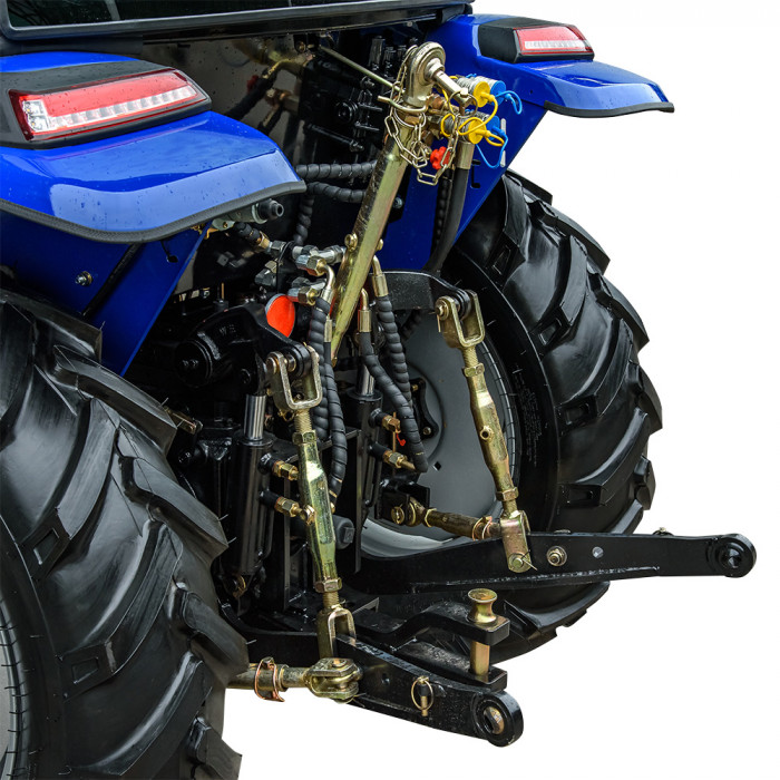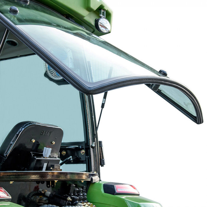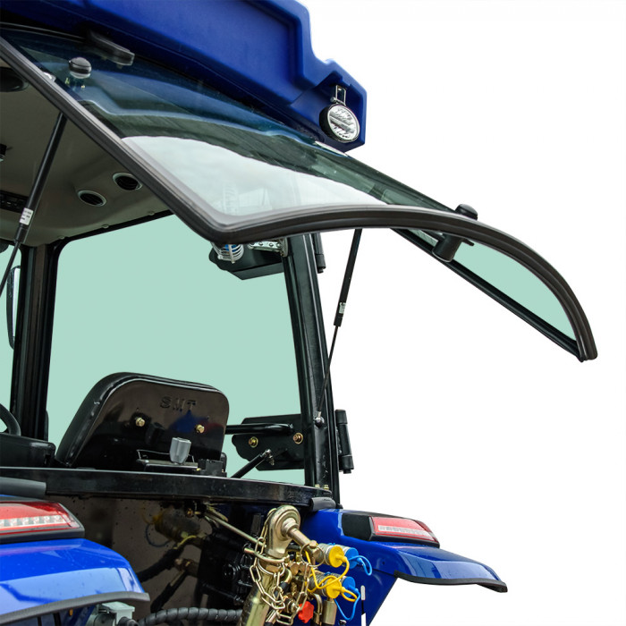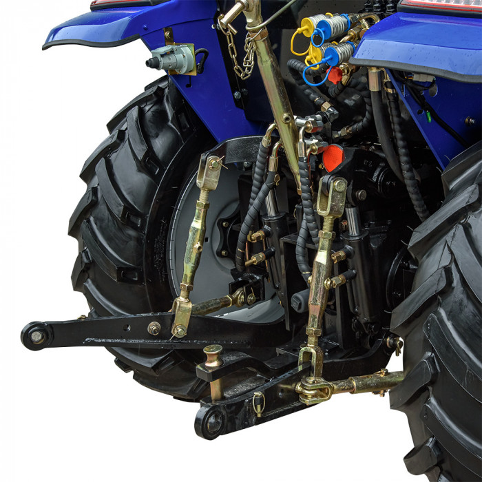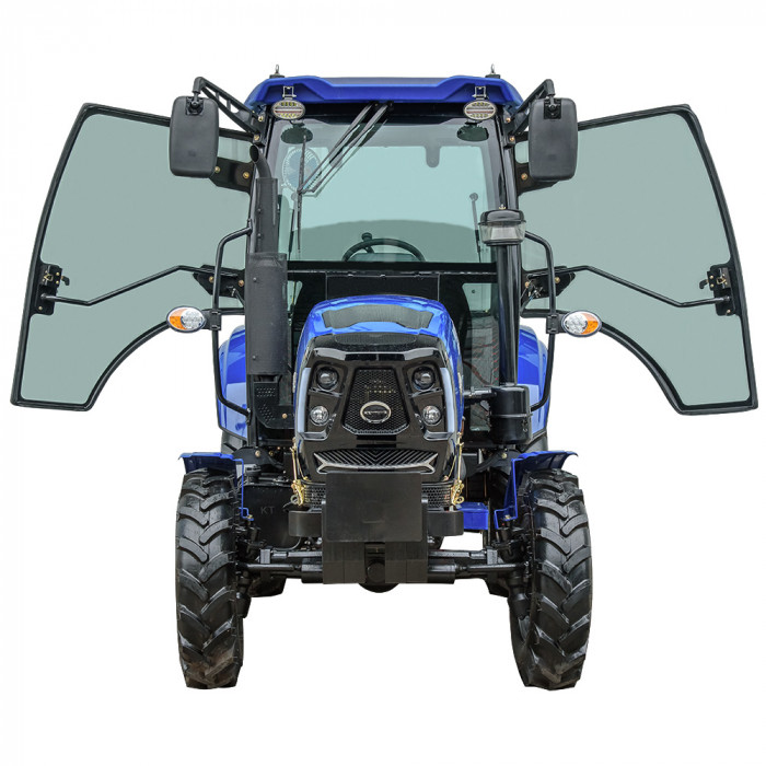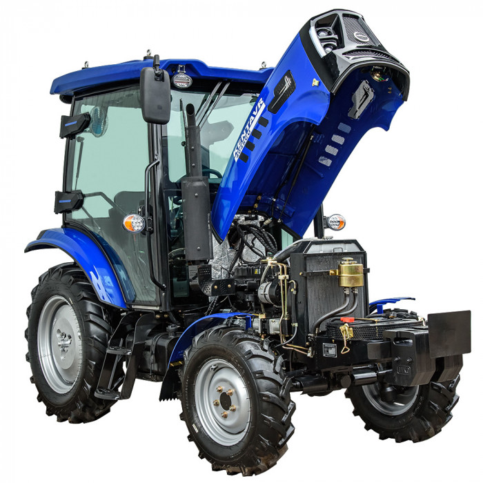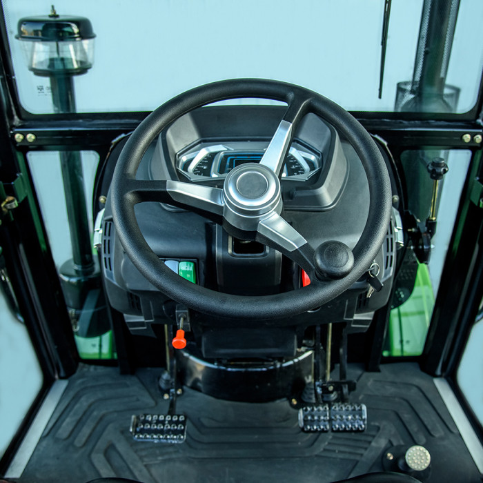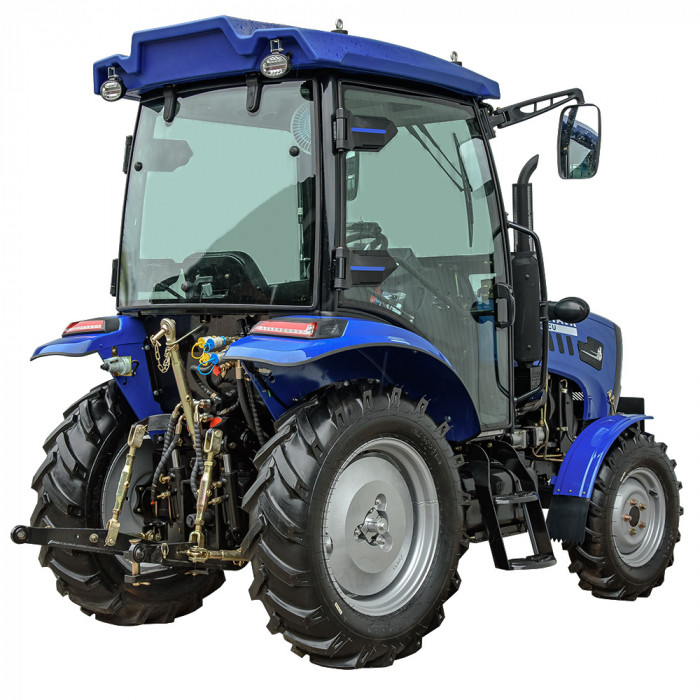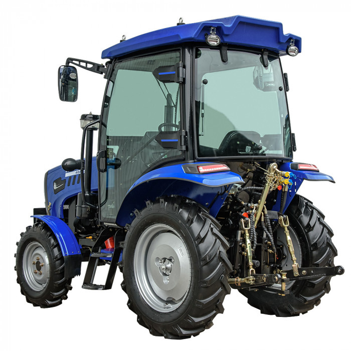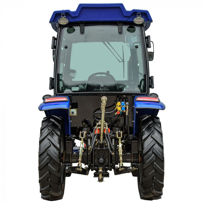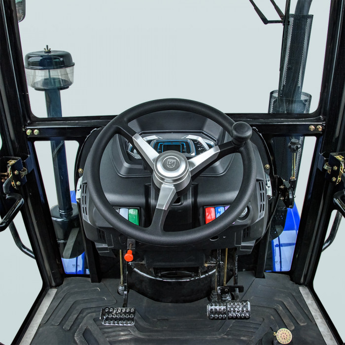Модель имеет кабину со стеклоочистителем, отоплением, вентилятором и магнитолой, что создаёт комфортные условия в любую погоду. Задняя трёхточечная навесная система с гидроподъёмником грузоподъёмностью 550 кг позволяет агрегатировать широкий перечень оборудования. ВОМ с задним расположением имеет две скорости: 540 / 720 об/мин и поддерживает одновременное буксирование и привод навесного оборудования. Гидравлическая система обеспечивает 2 выхода для подключения техники и имеет отдельный бак на 6,5 л. Колёсная база — 1830 мм (передние 7.50-16, задние 11.2-24) обеспечивает устойчивость в поле.