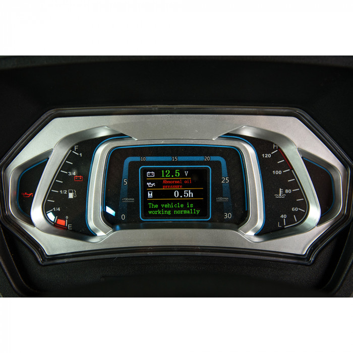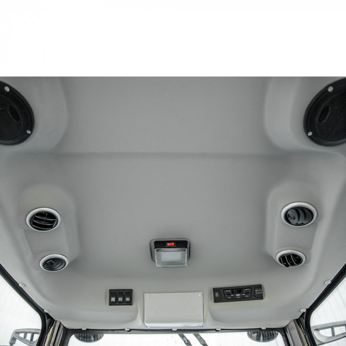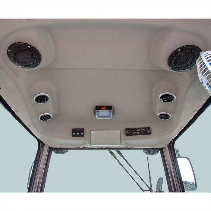 Место водителя оснащено амортизированным сиденьем с регулировкой по расстоянию до руля. Панель приборов информативная, с индикаторами и шкалами. Световая группа включает основные фары, габариты, повторители указателей поворота, а также влагозащищённую розетку для прицепа (35 Вт). Генератор мощностью 750 Вт поддерживает работу всей электроники. Базовая комплектация: металлические крылья, ящик для ЗИП, аварийная сигнализация, внутреннее освещение кабины.