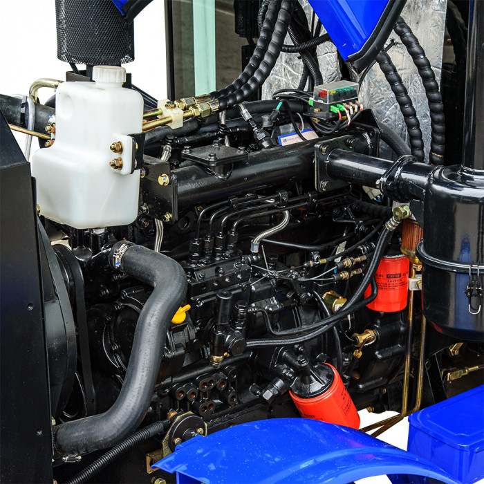 Трактор оснащён дизельным двигателем JDM490T3 с 4-мя вертикально расположенными цилиндрами и объёмом 2545 см³. Номинальная мощность — 40 л.с. (29,4 кВт) при 2300 об/мин. Система электростартерного запуска поддерживается электрофакельным подогревом для надёжного старта в холодное время. Воздух очищается через масляный фильтр с металлической сеткой и моноциклоном, а топливо проходит двухступенчатую фильтрацию (отстойник и JX0809). Система охлаждения — закрытого типа с расширительным бачком, объём — 10,5 л. Расход топлива ≤245 г/кВт·ч — экономность и выносливость в приоритете.