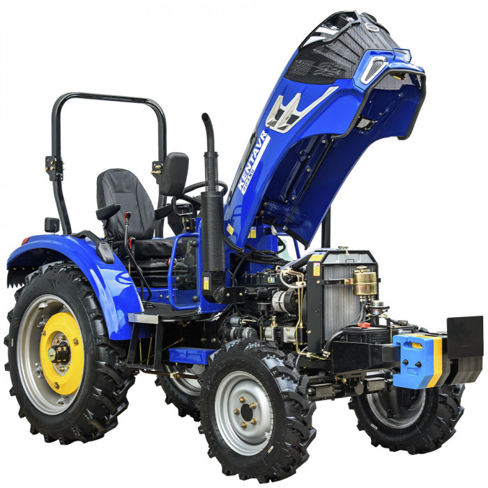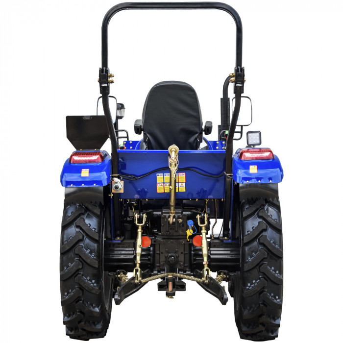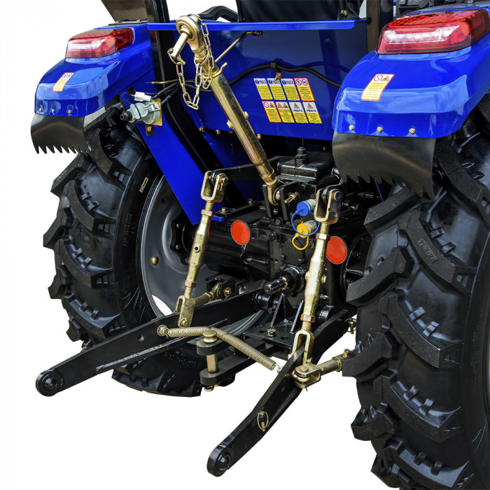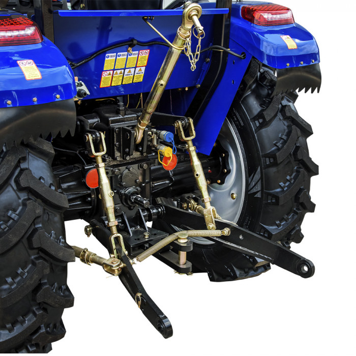 Задня триточкова навісна система універсального типу оснащена вбудованим гідроциліндром із вантажопідйомністю до 800 кг. Вал відбору потужності (ВВП) функціонує на швидкості 540 об/хв. Гідросистема обладнана двома задніми гідравлічними виходами зі швидкороз’ємними муфтами, керування здійснюється від гідророзподільника.