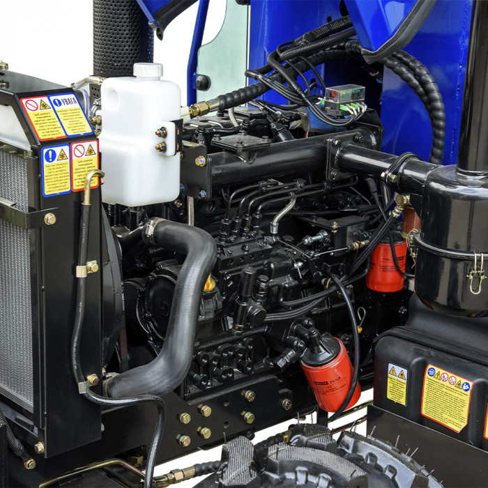 Трактор оснащён 4-цилиндровым дизельным двигателем КМ490ВТ объёмом 2545 см³ и номинальной мощностью 40 л.с. (29,4 кВт) с непосредственным впрыском топлива. Контактно-масляный воздушный фильтр с масляной ванной, бумажным элементом, металлической сеткой и циклонным сепаратором обеспечивает надёжную защиту от пыли. Для облегчённого запуска в холодное время установлена электрофакельная свеча накаливания. Топливный бак вместимостью 65 л позволяет работать долгое время без дозаправки.