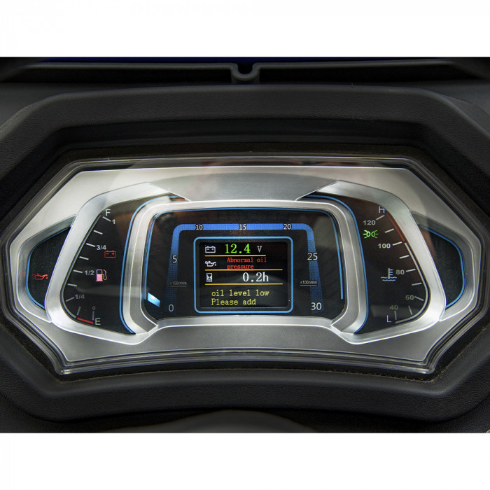 Сиденье на амортизаторе с регулировкой расстояния до руля и подлокотниками. Ровный пол оператора обеспечивает комфортную работу. Многофункциональная электронная приборная панель с цифровым указателем давления. Есть электророзетка для подключения прицепа. Металлические передние крылья. Трактор оснащён звуковым сигналом, аварийной сигнализацией, зеркалами заднего вида, передними и задними фарами, указателями поворота, задним стоп-сигналом и освещением кабины.