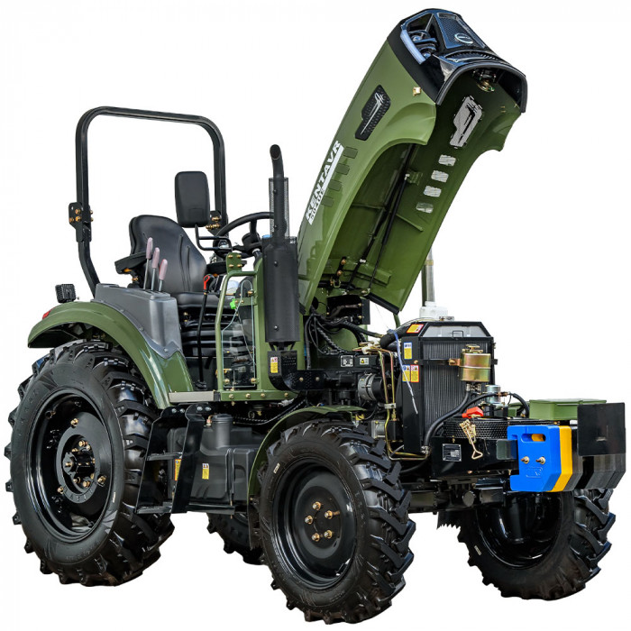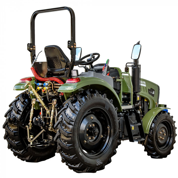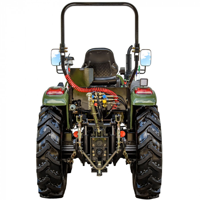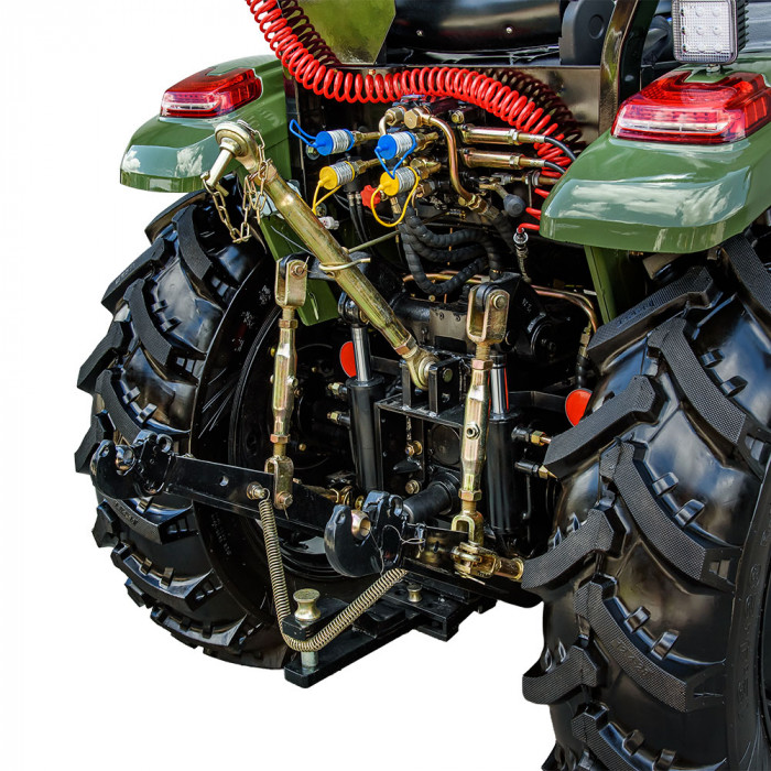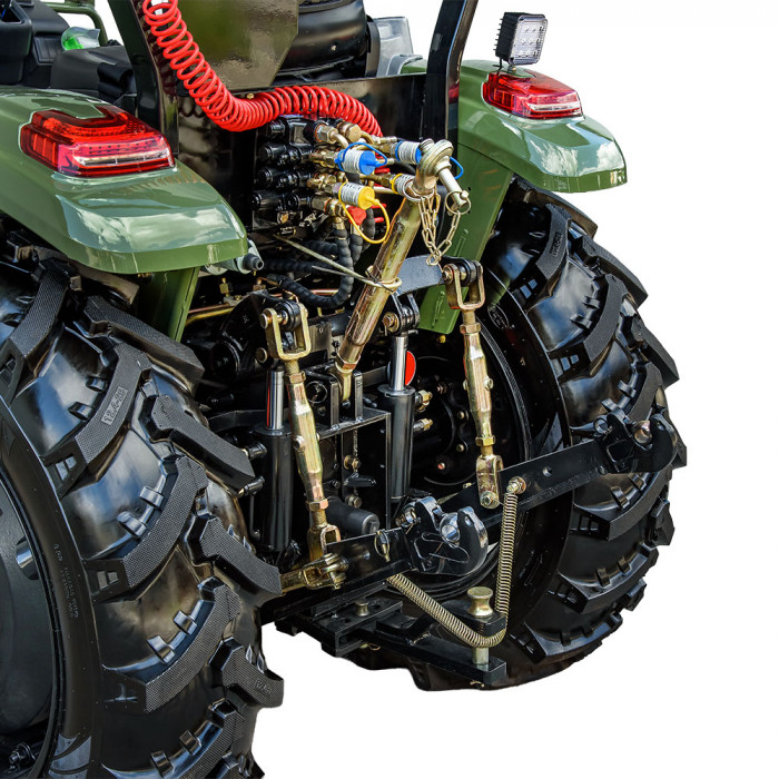 Универсальная 3-точечная навеска с двумя гидроцилиндрами позволяет работать с широким спектром сельхозоборудования. Вал отбора мощности — на 540–1000 об/мин. Имеется 4 гидровыхода с быстроразъёмными муфтами — 2 напор/слив и 2 слив — для удобного подключения оборудования.