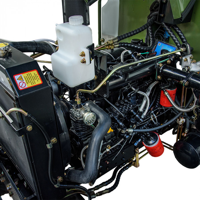 В сердце трактора — проверенный 4-цилиндровый дизельный двигатель КМ495 мощностью 50 л.с. (36,8 кВт) и объёмом 3170 см³. Система непосредственного впрыска топлива обеспечивает экономичный расход, а контактно-масляный воздушный фильтр с циклоном — стабильную работу в запылённых условиях. Для зимнего запуска предусмотрена электрофакельная свеча. Бак объёмом 50 л гарантирует длительный период работы без дозаправки.