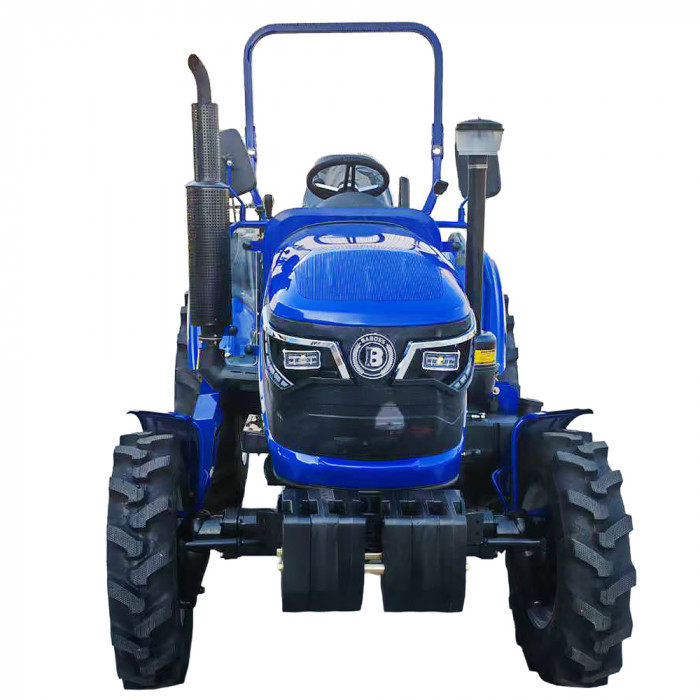Эксплуатационная масса трактора KENTAVR B244DXU составляет около 1700 кг, что положительно влияет на сцепление с почвой и стабильность под нагрузкой. Клиренс 300 мм позволяет работать на неровных участках, не опасаясь повреждения узлов. Комбинация передних и задних колёс разного размера обеспечивает правильное распределение веса и уверенное движение как по полю, так и по грунтовым дорогам. Дополнительные балластные грузы дают возможность адаптировать трактор под конкретные условия работы.