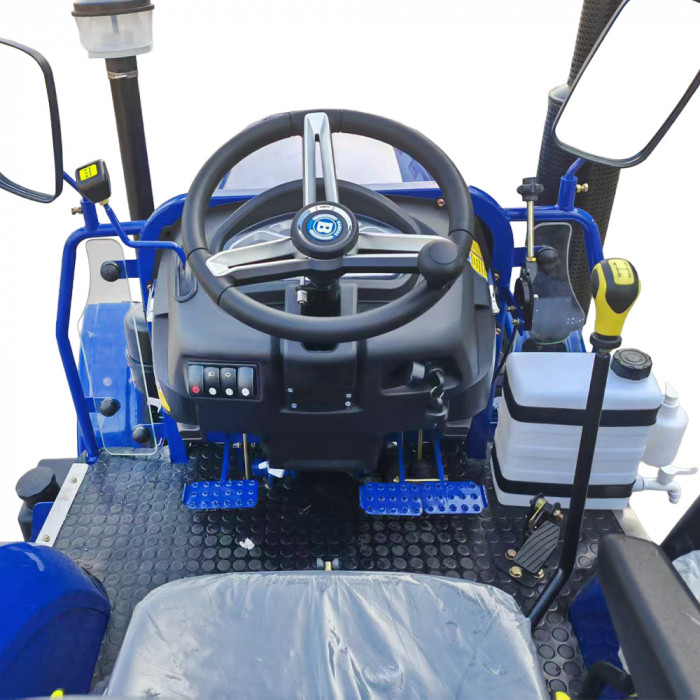 Место водителя продумано с учётом длительной работы. Амортизированное сиденье с регулировкой и подлокотниками снижает усталость, ровный пол добавляет комфорта, а электронная приборная панель позволяет удобно контролировать основные параметры работы трактора. Светотехника обеспечивает хорошую видимость в тёмное время суток, что важно во время сезонных работ.
