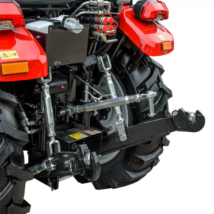 Трёхточечная задняя навесная система с гидроподъёмником, привод от двух гидроцилиндров. ВОМ с частотами 540 и 1000 об/мин для подключения широкого спектра навесного оборудования. Четыре гидровыхода с быстроразъёмными муфтами. Дополнительные грузы на передней и задней осях повышают устойчивость.