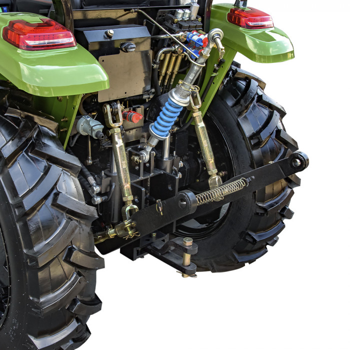 На борту — 3-точечная задняя навесная система с двумя гидроцилиндрами и ВОМ на 540/1000 об/мин. Есть четыре гидровыхода с быстроразъёмными муфтами для подключения навесного оборудования. В комплекте — съёмная маятниковая цапфа для буксировки.