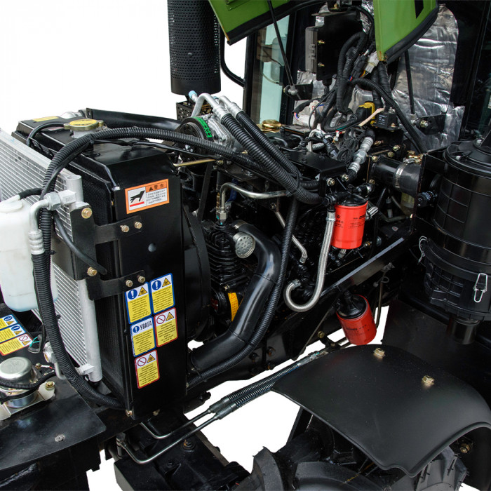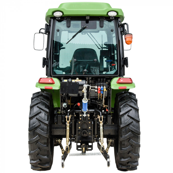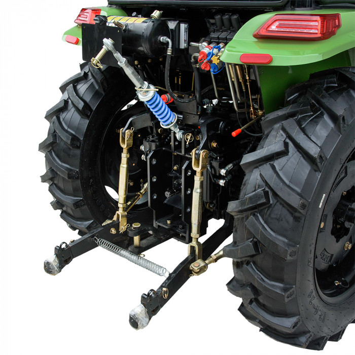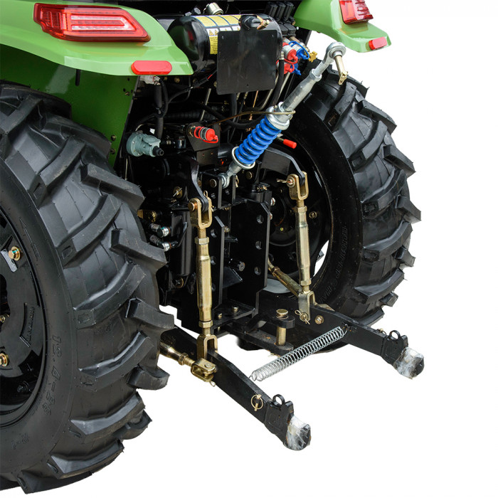 Колёсная формула 4×4 гарантирует хорошую проходимость. Трактор оснащён универсальной 3-точечной задней навесной системой с приводом от двух гидроцилиндров. Максимальная грузоподъёмность — в пределах технических возможностей модели.