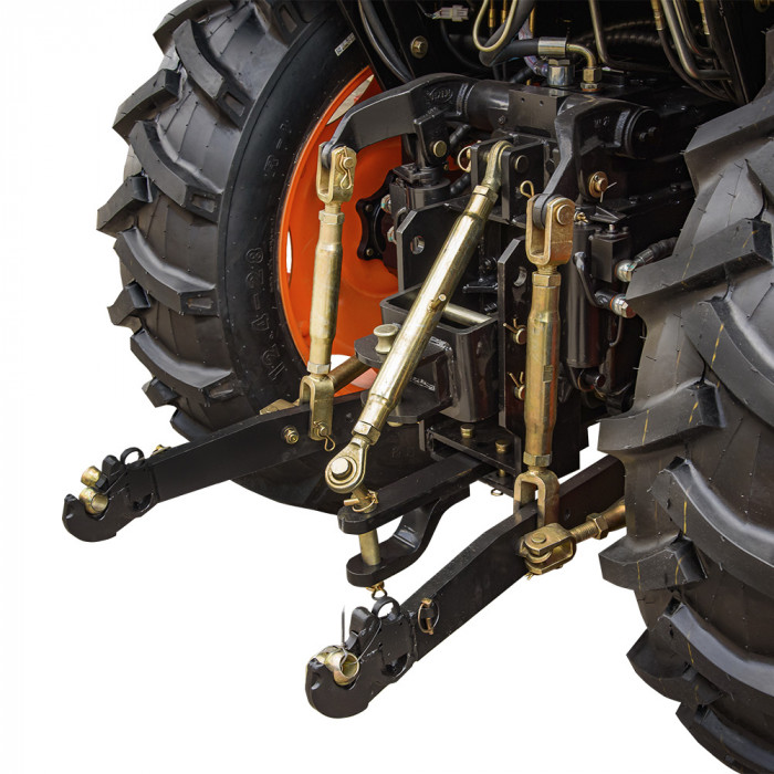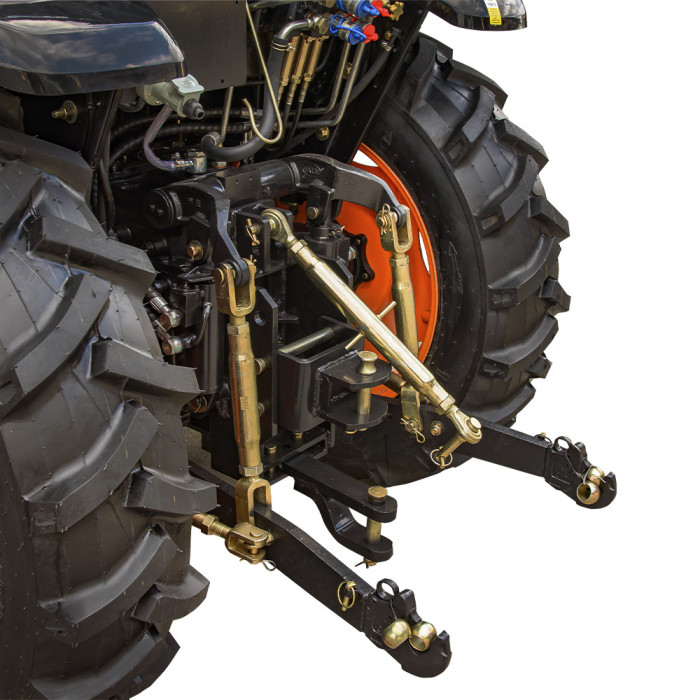 Модель комплектуется 3-точечной задней навеской с приводом от двух гидроцилиндров. Оснащён валом отбора мощности на 540–1000 об/мин, трактор позволяет подключать широкий спектр навесного оборудования. Для этого предусмотрены 4 гидровыхода с быстроразъёмными муфтами.