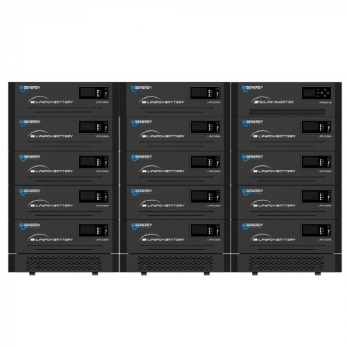 Акумулятор для накопичення енергії GENERGY LFP-5120W 5120 Вт (у комплекті 14 одиниць) - є частиною системи накопичення електроенергії (може бути частиною побутової сонячної електростанції). Являє собою стекируовану батарею, яка повинна підключатися до спеціального інвертора GENERGY - для накопичення і віддачі електроенергії.